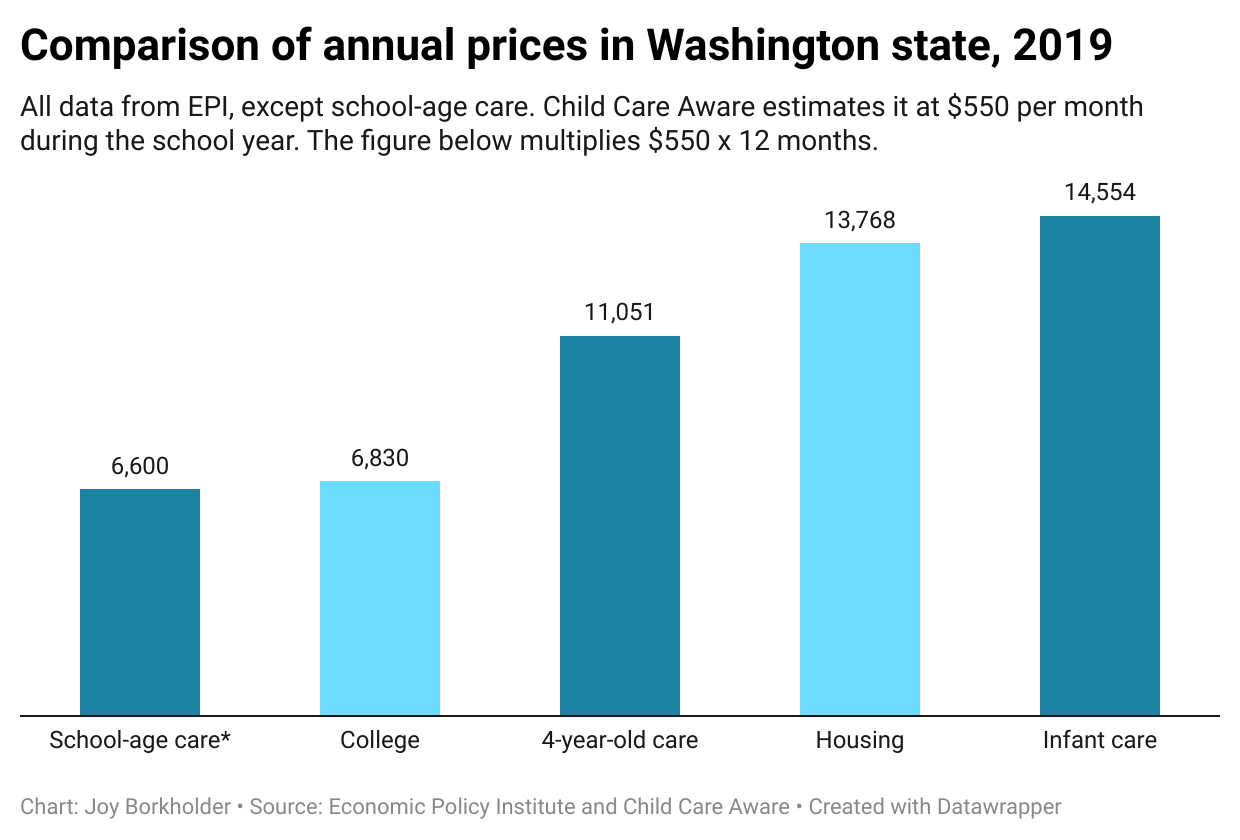 According to the Economic Policy Institute (EPI), Washington ranked ninth among the least-affordable states in the nation for infant care in 2019, with costs requiring 20% of median family incomes.