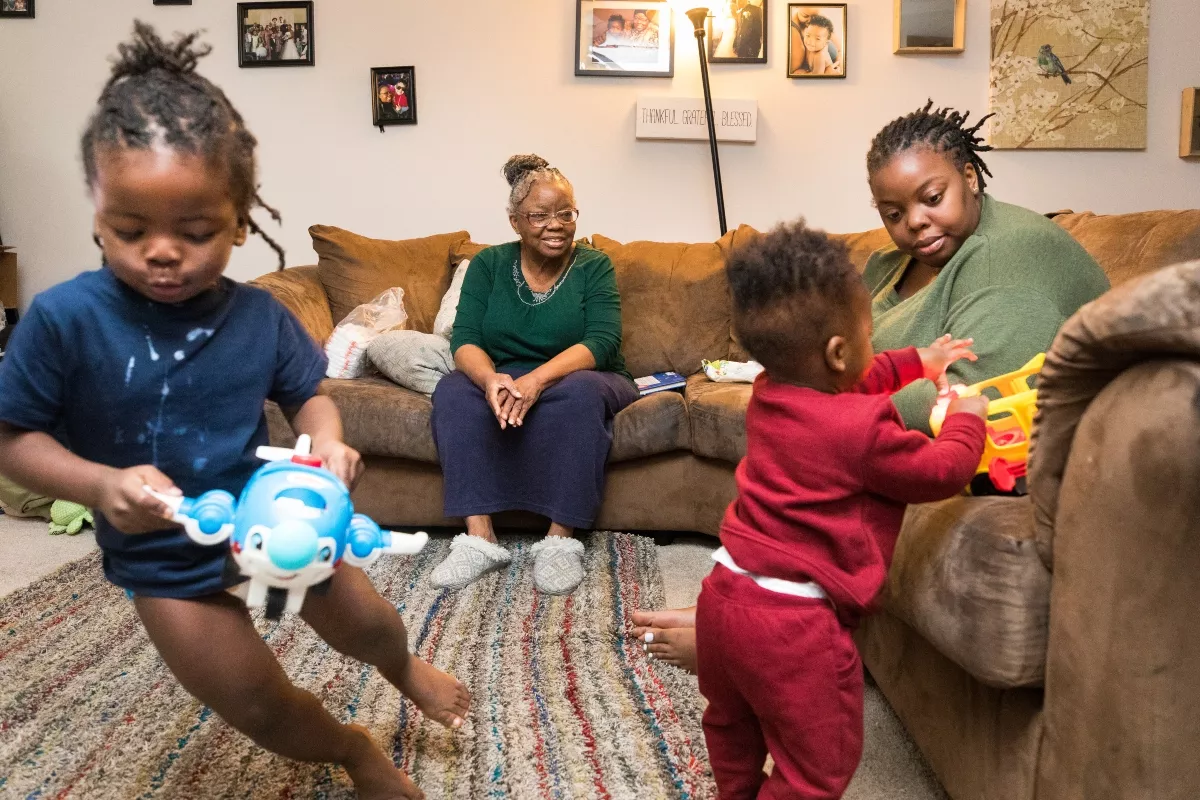 Ewings, her husband and kids live with her recently retired mother, in her mom’s townhome in the Manitou neighborhood of south Tacoma. The neighborhood feels safe and relatively quiet, with a mix of families and retired folks. But the 1,100-square-foot house is small for five people: Maya, her husband and the toddler share one bedroom, while her mom shares the other with the baby. When Ewings needs to focus on paid work, her mom, in her 70s, cares for the boys — help that is essential, as it is for many Washington families, but far from perfect. With both boys now walking and running, it’s more of a challenge than ever.