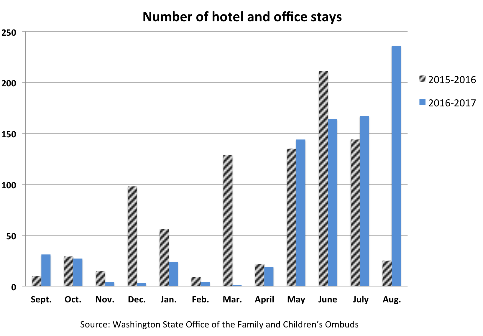 Though the number of foster homes in Washington has ticked up in the past few years, to about 5,100, that number isn't enough to handle the approximately 9,100 young people in the foster care system. In fact, if notoriously overworked state caseworkers are unfairly sanctioning foster parents and causing them to drop out of the system, they are exacerbating a crisis of historic proportions in Washington’s child-welfare system. That crisis already has resulted in hundreds of foster children being housed in motels or even occasionally at state offices. State officials have been so desperate to house foster youth that they have resorted to paying some foster parents up to $600 per night to take in a single foster kid.