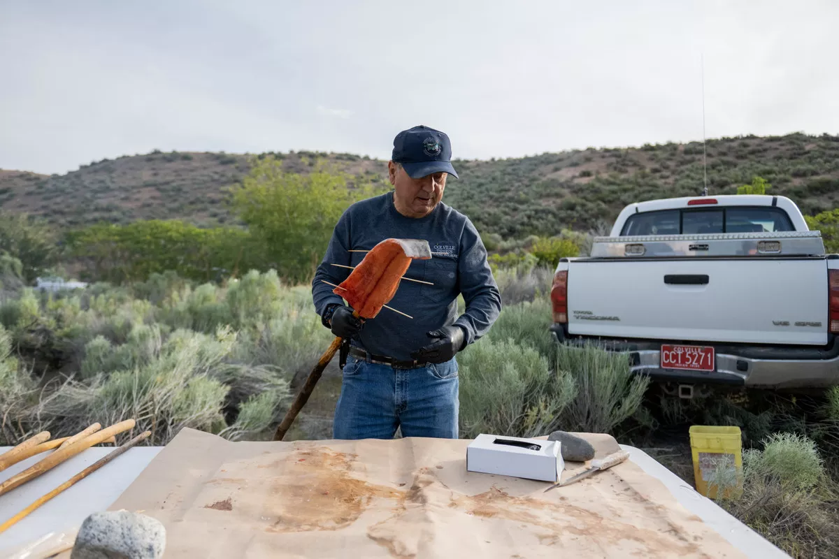 In 2019, they began to capture adult salmon that were returning from the ocean and relocated them above the dams. Conant, who organizes the salmon ceremony, was among the tribal members who released those captive fish into the water. To her delight, biologists later found salmon from the tribes’ releases spawning in the Sanpoil River, a tributary of the upper Columbia.
