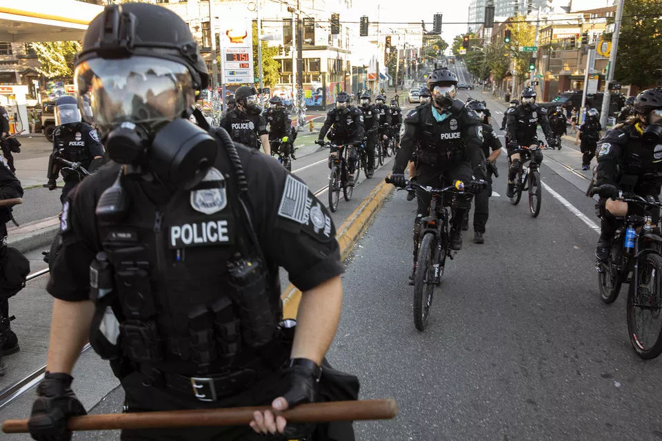 While originally branded as a friendly community policing tool in Seattle, bike policing has spread across the country and evolved into a leading strategy for confronting crowds of demonstrators as officers use interlocked bikes to form crowd-control barriers. Seattle officers have spearheaded that transition throughout its history, from early traffic enforcement to its pioneering use against protesters in the 1999 “Battle of Seattle” to clashes against Black Lives Matter demonstrators three years ago.