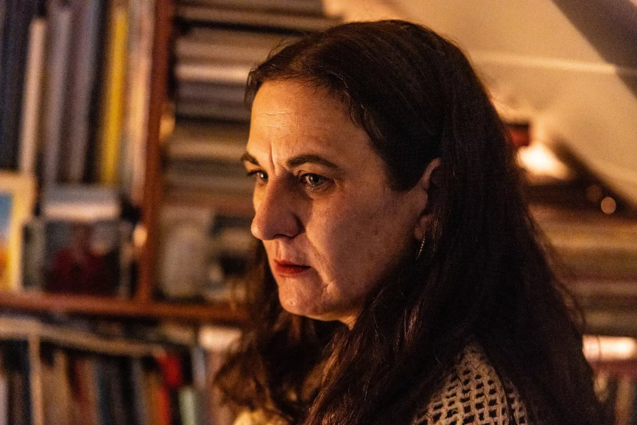 Sharilyn Lux stands in the bathroom of her house in Snoqualmie, Wash., in October 2024. Nearly six years ago, when Lux woke up in her own bed with signs of being raped and no memory of the night before, she looked in her bathroom mirror to see bruising across her face and body. Credit: Mike Kane/InvestigateWest