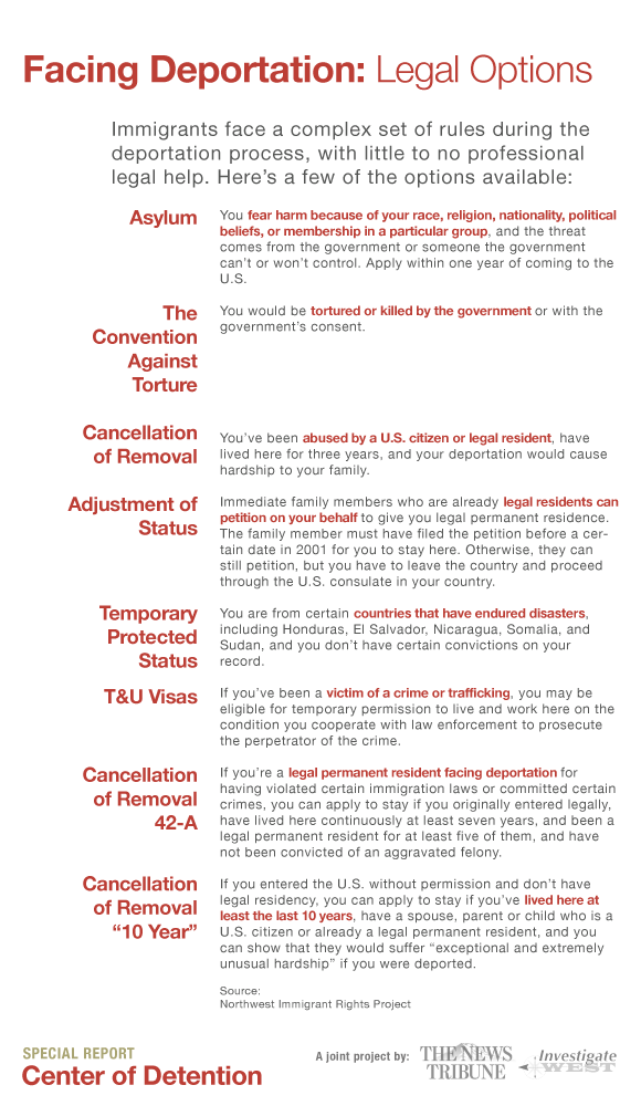 '; document.querySelector('#copytext').value = textContent; modal.showModal(); }); // Modal close functionality const modal = document.querySelector('.republish-modal'); const closeBtn = document.querySelector('.republish-modal-close'); // Close button click closeBtn.addEventListener('click', function() { modal.close(); }); // Close on backdrop click modal.addEventListener('click', function(e) { if (e.target === modal) { modal.close(); } }); // Close on ESC key (this is usually built-in, but adding for safety) modal.addEventListener('keydown', function(e) { if (e.key === 'Escape') { modal.close(); } }); // Copy text button functionality document.querySelector('.copy-text-button').addEventListener('click', async function() { const textarea = document.querySelector('#copytext'); const text = textarea.value; try { // Try modern Clipboard API first if (navigator.clipboard && window.isSecureContext) { await navigator.clipboard.writeText(text); this.textContent = 'Copied!'; } else { // Fallback for older browsers textarea.select(); document.execCommand('copy'); this.textContent = 'Copied!'; } // Reset button text after 2 seconds setTimeout(() => { this.textContent = 'Copy text'; }, 2000); } catch (err) { console.error('Failed to copy text: ', err); // Fallback to selection if copying fails textarea.select(); this.textContent = 'Text selected'; setTimeout(() => { this.textContent = 'Copy text'; }, 2000); } }); });Immigrants face a complex set of rules during the deportation process, with little to no professional legal help. Here's a few of the options available, according to the Northwest Immigrants Rights Project.