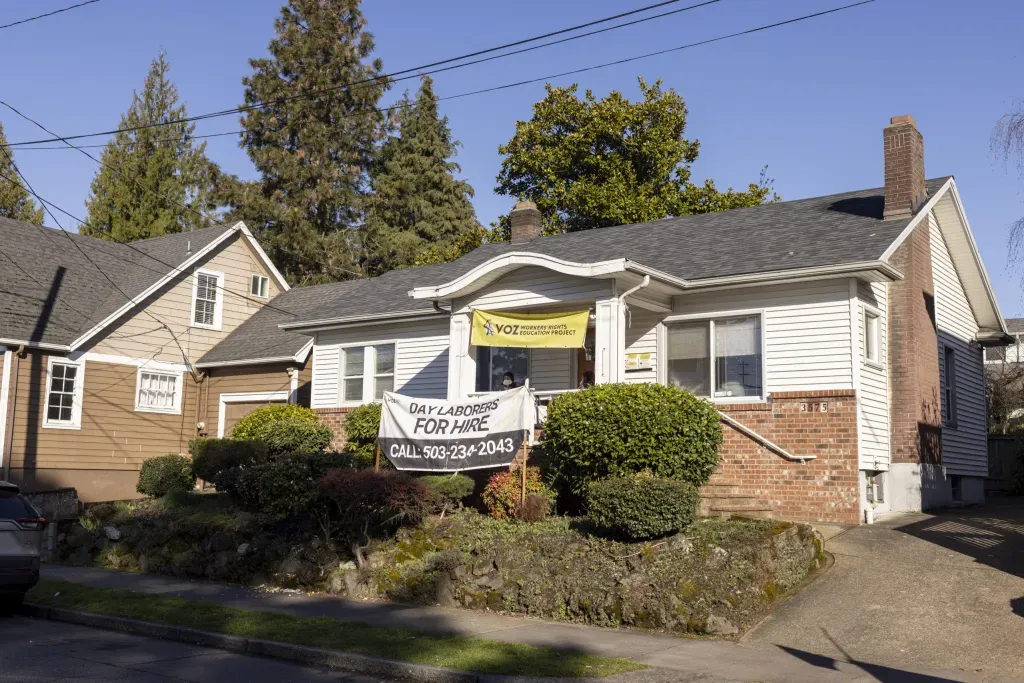 Nemorio is one of dozens of immigrant day laborers searching for work at the Worker Center. Along with central heating, coffee, pastries, and conversations to pass the time, the Center also provides a degree of security for its workers, some of whom are undocumented. A poster that says in big block letters, “NOT OPEN TO THE GENERAL PUBLIC,” is pasted over the front door, next to a Ring camera. Volunteers regularly sign up for shifts to sit on a folding chair and guard the front door. Often bundled up in rain jackets with hot tea in hand, they observe the Worker Center’s surroundings — watching who approaches the building. With increased ICE presence in Portland over the past year, their job is to alert workers if they spot masked agents.