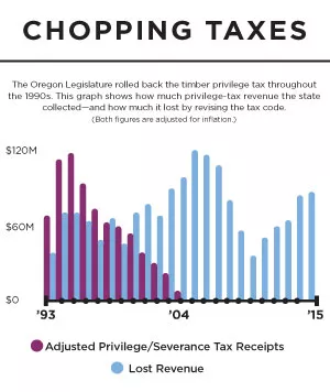 The unraveling of the privilege tax began in 1991, when the timber interests made the case that property tax relief for residential and commercial property owners under Measure 5 should be similarly applied to trees. After a series of incremental reductions, former Gov. John Kitzhaber and the GOP-controlled Legislature finally finished the job in 1999, eliminating the privilege tax altogether for Oregon’s industrial timber companies.
