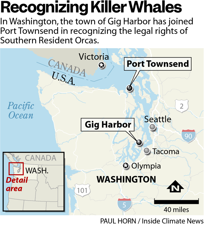 Because the Southern Resident Orcas resonate so strongly with people in Washington and around the world, Kevorkian said, she is hoping that the Port Townsend and Gig Harbor resolutions will inspire recognition of the rights of the orcas, and nature in general, at the state level in Washington.